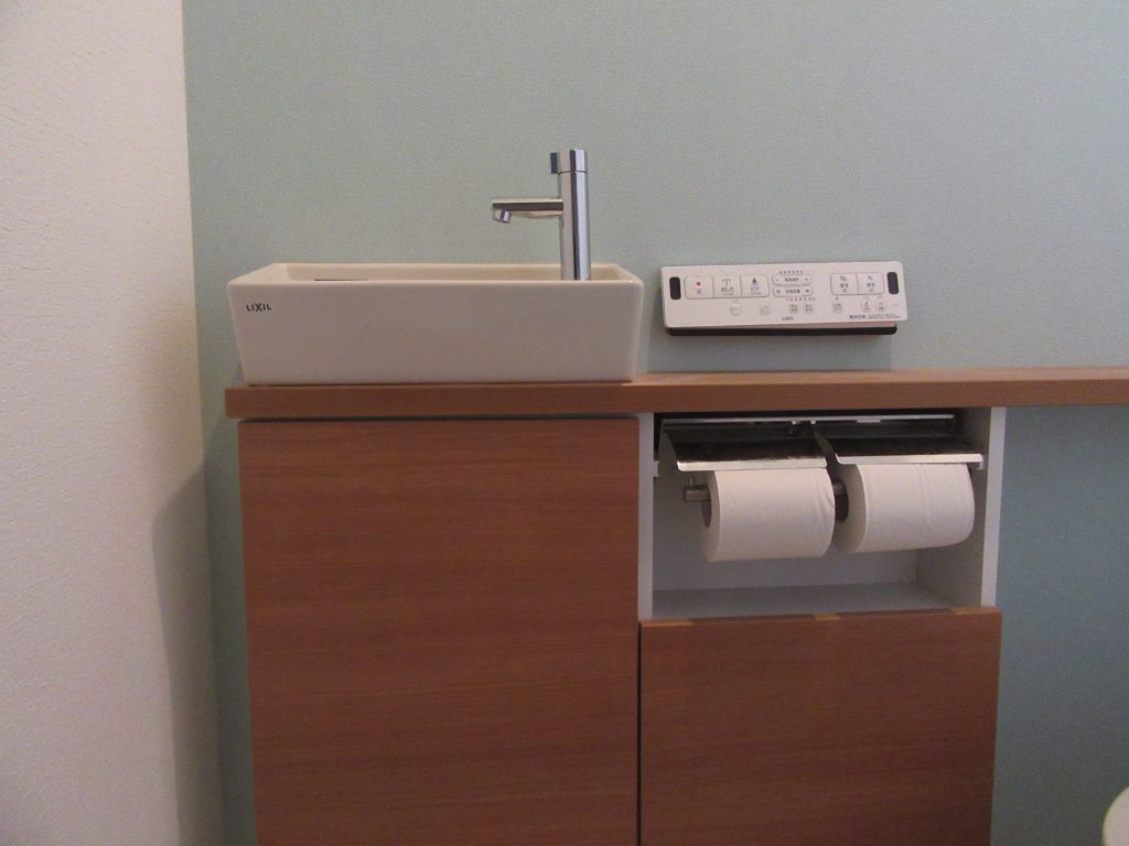 手洗い器はキャパシアを採用しています。色はクリエモカ。スイッチの位置はLIXIL推奨の位置としています。