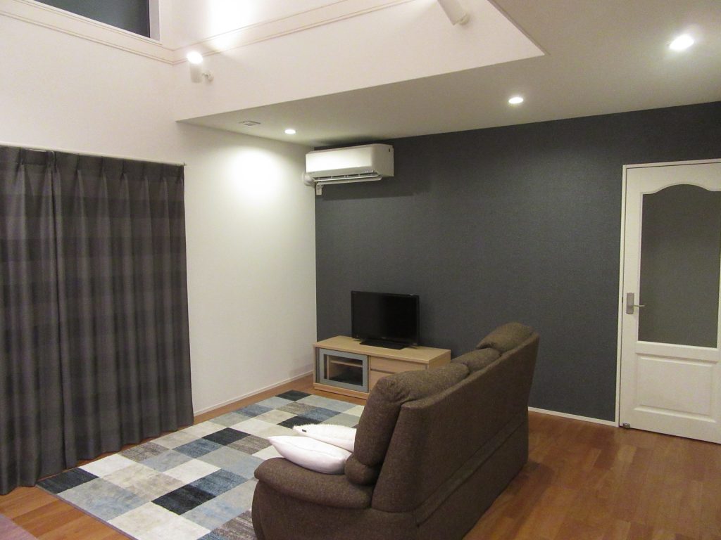 ダークグレーのアクセントクロスも少し薄色に感じますね。