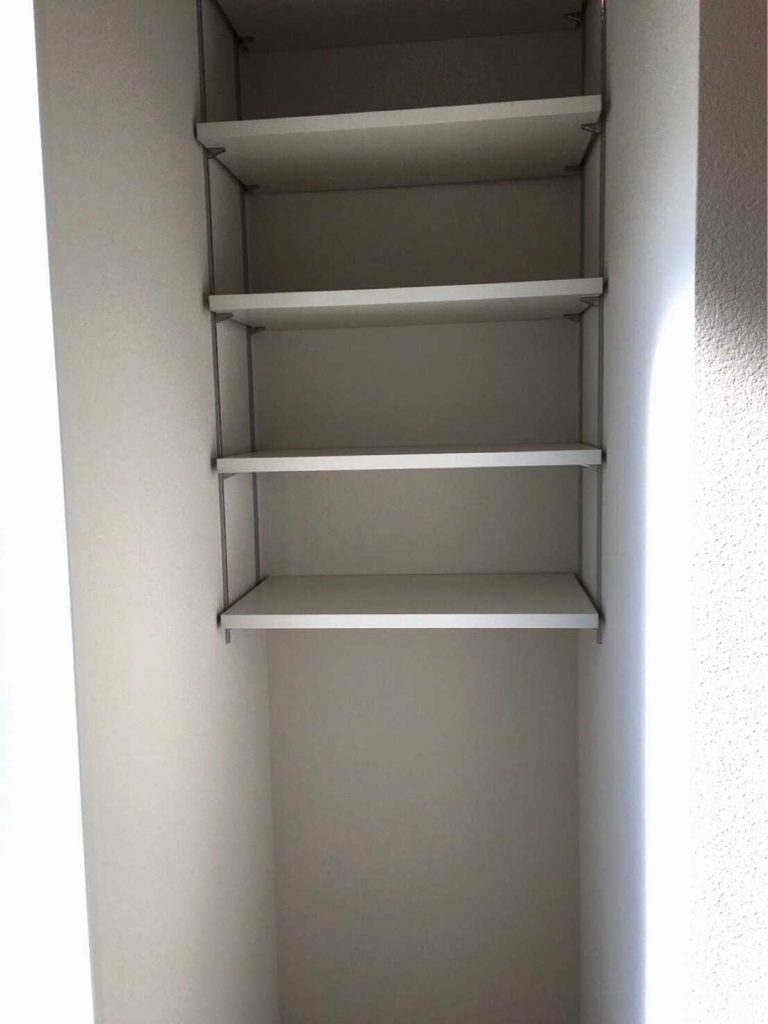 賃貸の時に使用していたゴミ箱は大きめのタイプだったため、フタを開けた状態で最高点が床から何cmかを確認し、その高さから可動棚の金具を取り付けてもらいました