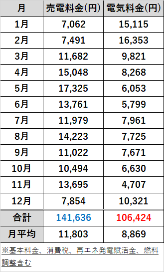 太陽光による売電金額は14万1636円